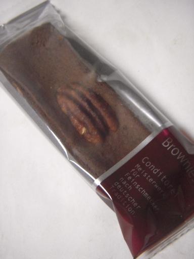 しっとり・しっかりとした甘目のココア風味の生地に(ソフトクッキーっぽい)、ペカンナッツをトッピングしている。
