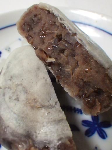 小豆粒餡に衣を薄く付けて焼き上げたもの。ほぼ小豆餡、といってもよいお菓子。