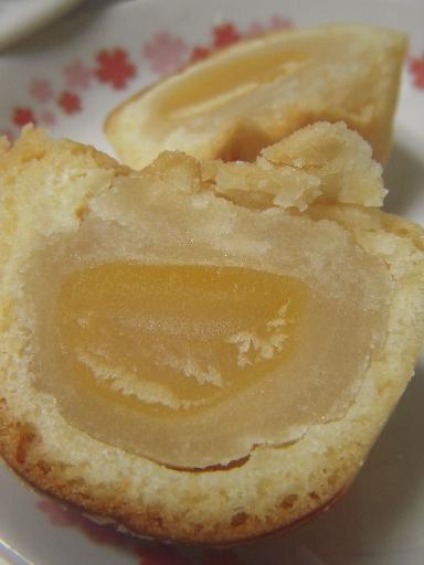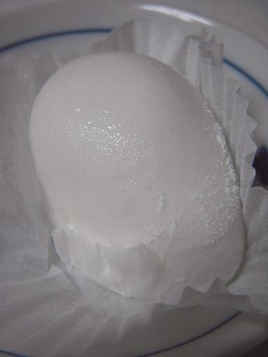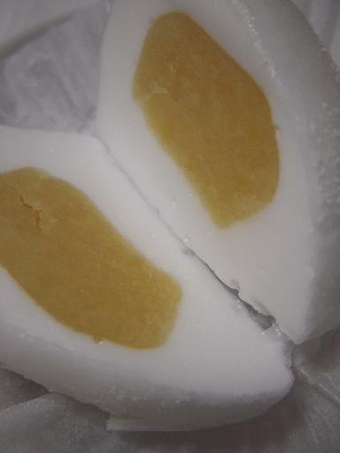 生地は、寒天をたっぷりと含んだマシュマロの様で、ゆで卵の白身の様な弾力が。中心には黄色に染められた白餡があり、これにもゆで卵の黄身の様な弾力が。全体的に、ゆで卵の様な見た目と食感。にも拘わらず、甘さがあり、きちんと和菓子になっている。
