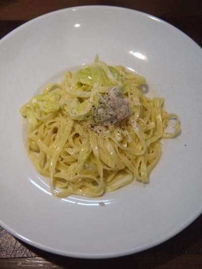 パスタは本日のパスタ2種類と、本日の生パスタ1種類から選べる。今回、本日の生パスタ(若鶏と春キャベツのクリームソース)を選んだ。