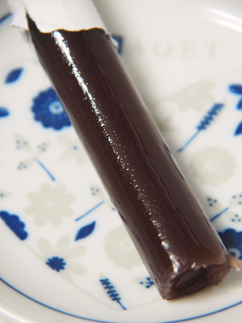 細い棒状になっているのが特徴。紙容器の底から中身を押し出していただく。