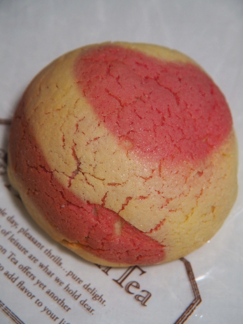 イチゴ風味のクッキー生地と、通常の風味のクッキー生地が、マーブル状態になっている。