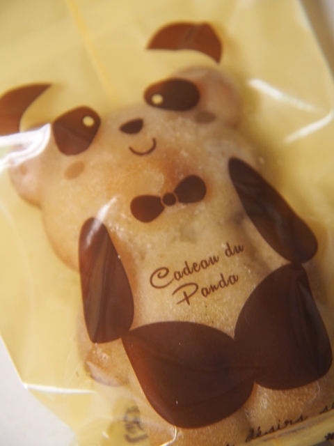 パンダを模ったマドレーヌ、となっている。ただ、実際には包装でそう見えるだけで、包装から出すとただのクマのマドレーヌになってしまう。