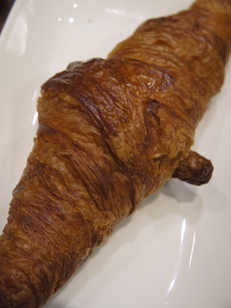 クロワッサンは、フランス語で三日月の意だが、当店のは直線的で、三日月に見えない。