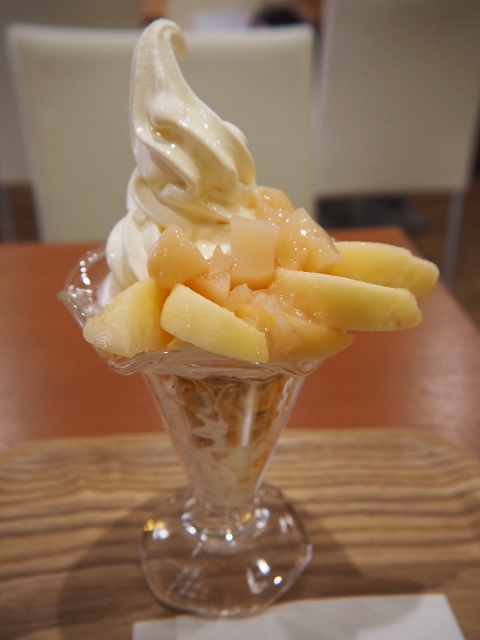 季節ごとに内容が変わるパフェで、今回訪れた時はももを使ったパフェが提供されていた。