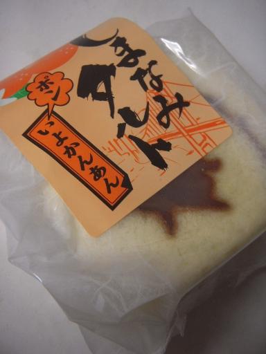 蜜柑風味のカステラを、漉し餡と通常のしっとりカステラ生地で包んでいる。