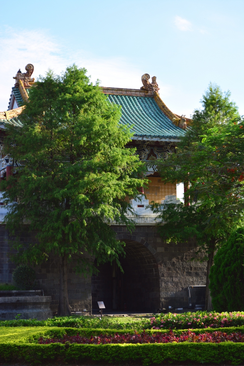 台北城の現存する四つの城門の内の一つ。台北城の東側に位置する。中正紀念堂から程近い場所にある。他の三つの城門は、近付こうと思えば近付ける様になっているが、この門は交通量の多い大通りのど真ん中にあるロータリーに位置し、柵で囲まれ、全く近付けない。規模も、他の門と比べて大きい。派手な外装だが、創建当時の姿ではない。第二次世界大戦後に改築された結果。奇妙な事に、最寄の地下鉄駅は東門駅ではなく、中正紀念堂駅か台湾大学病院駅となる。
