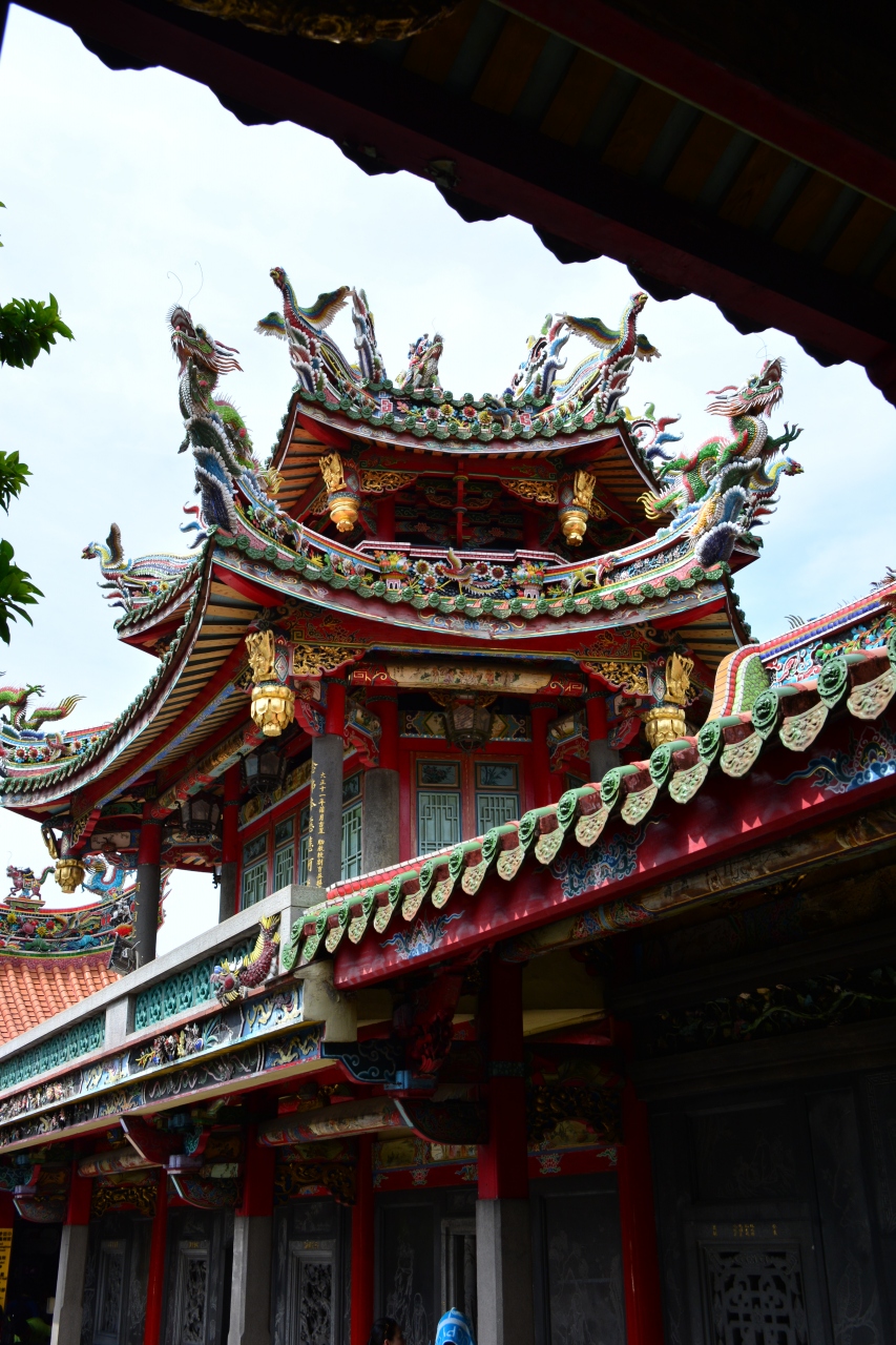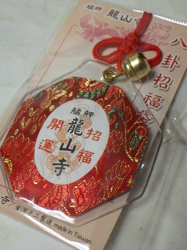 台北は勿論、台湾そのものを代表する寺の一つ。古くからある寺だが、建物は必ずしも古いという訳ではないらしい。敷地はそう広くなく、周りは高層建築が建ち並ぶので、ビルの谷間に古風な寺がある、といった感じ。門も古風な建築っぽいが、電光掲示板も設けられているのは、何となく台湾っぽい。境内は地元の者は勿論、海外からの観光客でごった返している。お守りも販売している。安いものだと40元(200円弱)と、おトク。