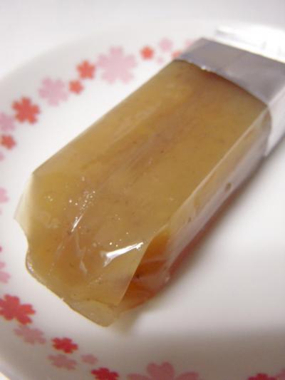 外側も、蕎麦粉と寒天と葛粉を練り合わせたもので、コンニャクではない。モチモチしていた。黒胡麻は使っていない様だが、それっぽい香ばしさを感じる。