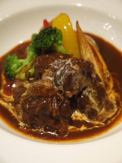 ビーフシチューは、温野菜がたっぷりと、彩りよく添えられていた。メインの肉は、フォークで切り分けられる程柔らかかった。