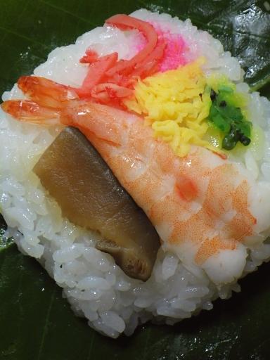 朴の木(ホオノキ)の葉で、散らし寿司を包んでいる。