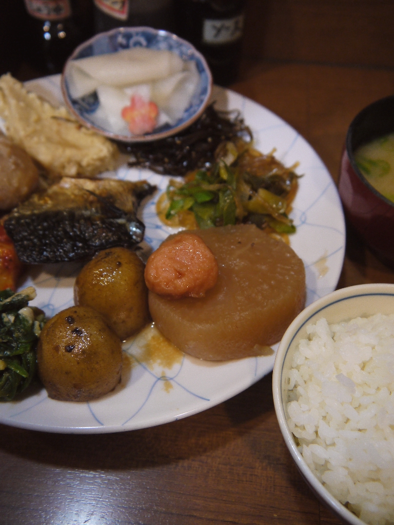 芋を使った料理が多いが、他に様々な野菜が。お袋の味、といった感じ。