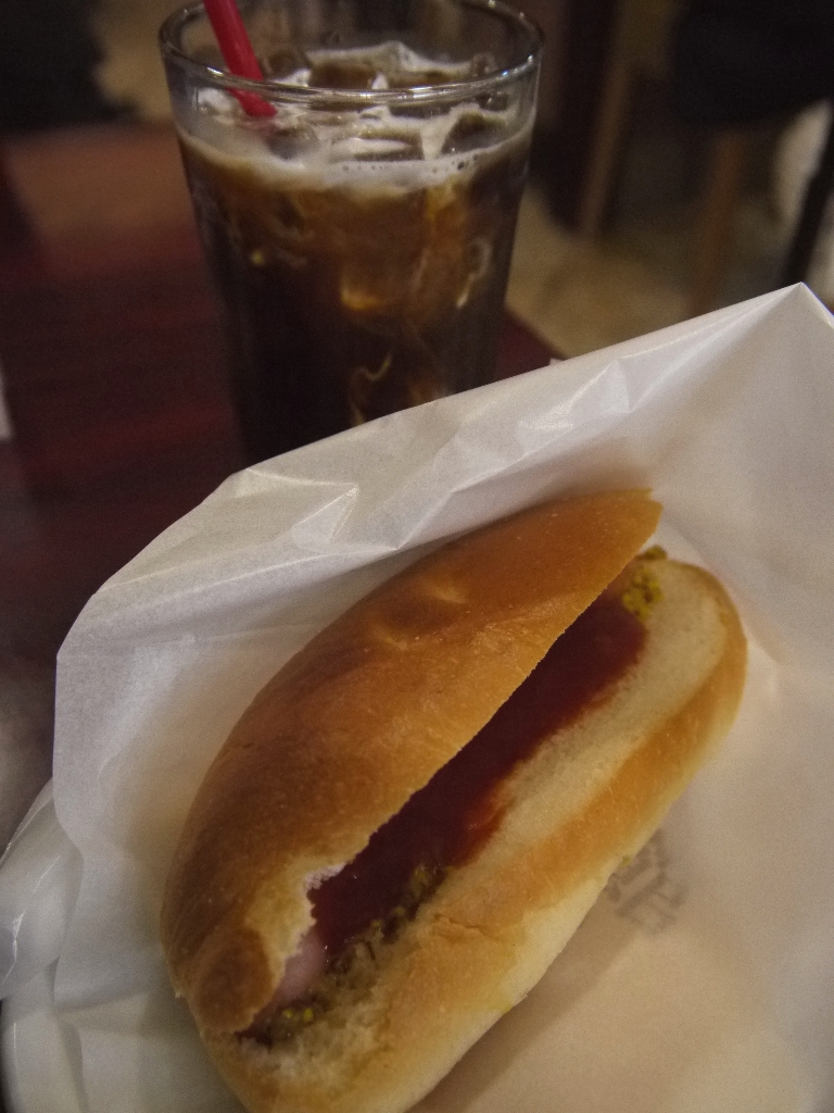 プリプリのソーセージ、ケチャップ・マスタード、そしてしっとり目のパンとの相性は抜群。- 旅行時期