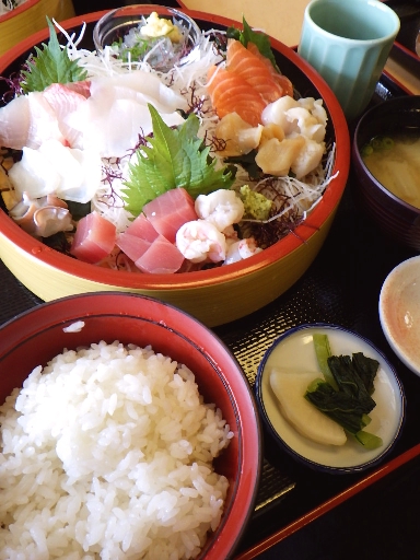 今回、生しらす、サーモン、マグロ、イカ、ハマチ、イカ、貝、タコ等が提供された。あまりのボリュームに、「これ何人分?」と思ってしまった程。