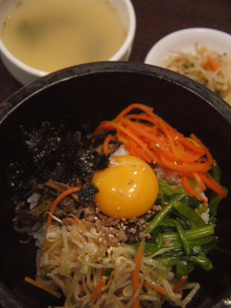 チゲ、石焼きビビンバ等、定番の韓国料理を提供する。