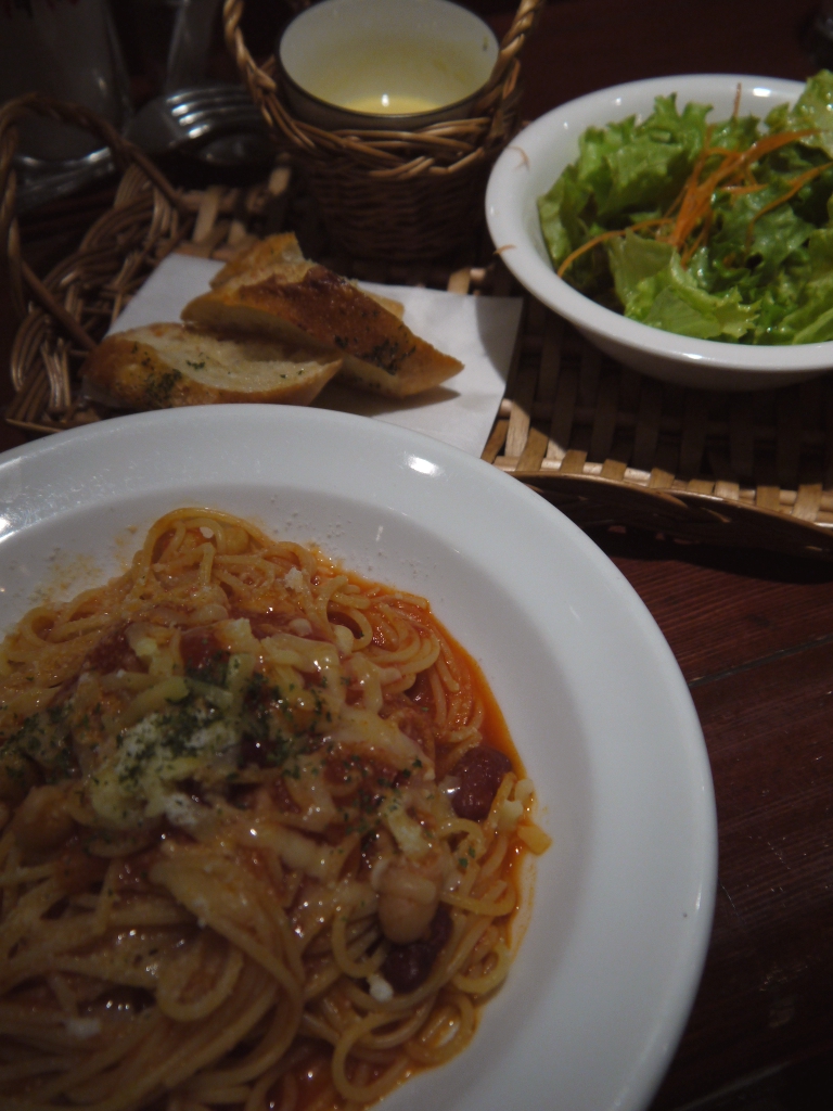 パスタランチの「赤」として提供されていた(他に「白」「クリーム」がある。白とクリームにどう違いがあるのかは不明)。