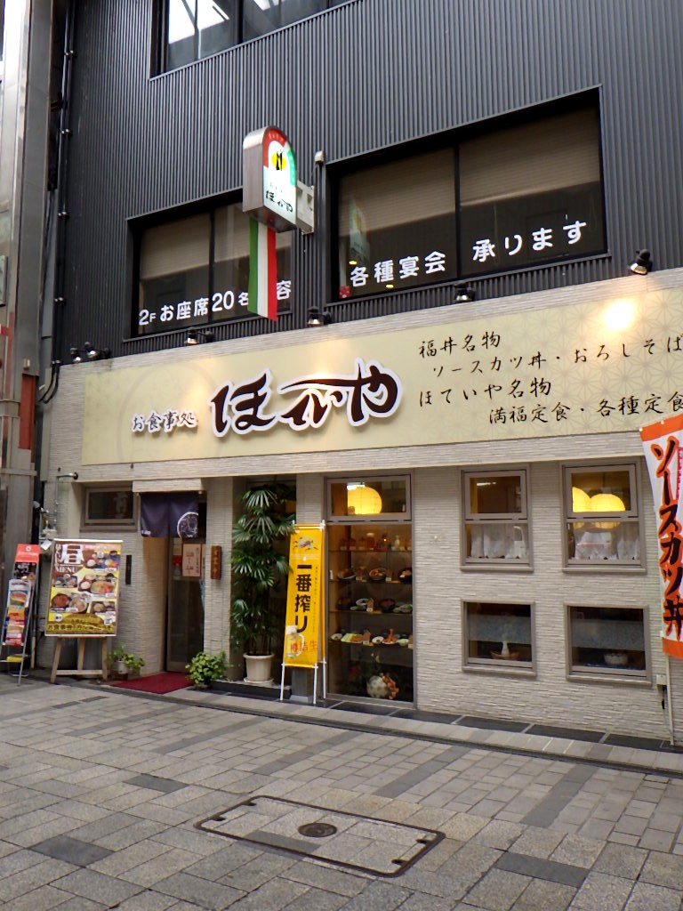 福井市のアーケード街(ガレリアアーケード)に面する食事処(以前は別の場所にあったが、現在地に移転したらしい)。