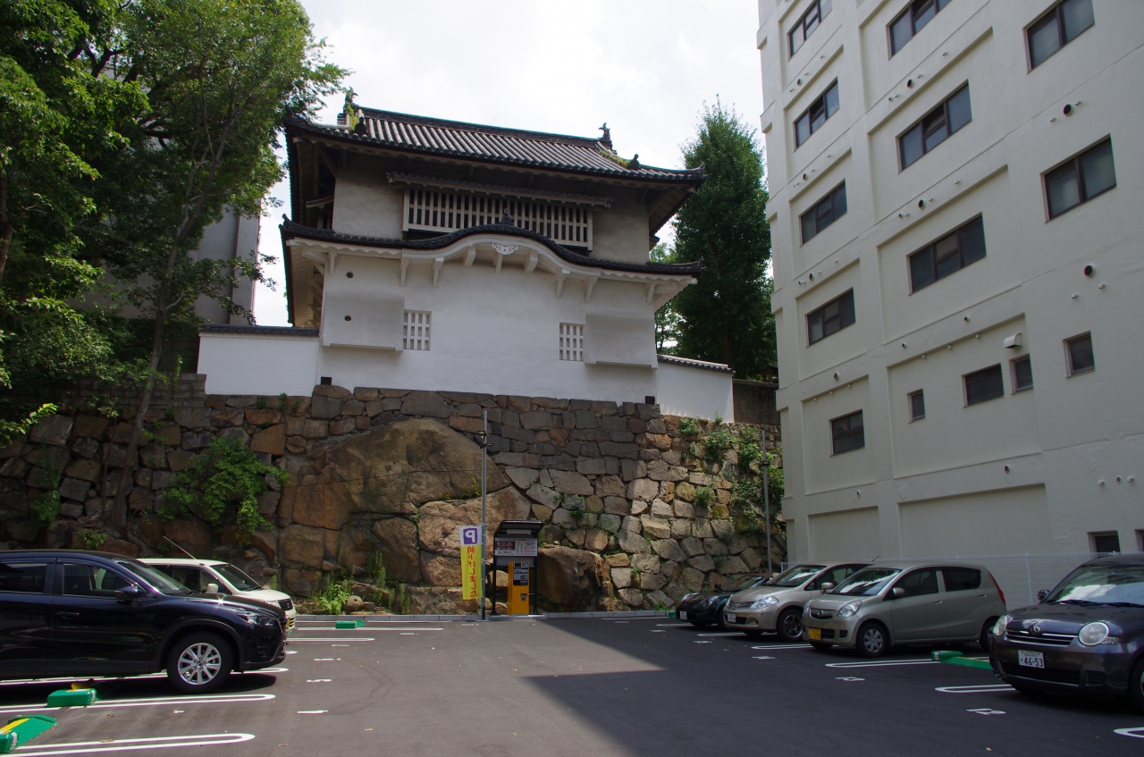以前は学校の敷地に入らないと見られなかったが、現在は櫓の外にあった建物が駐車場となっているので、石垣の上に立つ姿を辛うじて見る事が可能になった。- 旅行時期