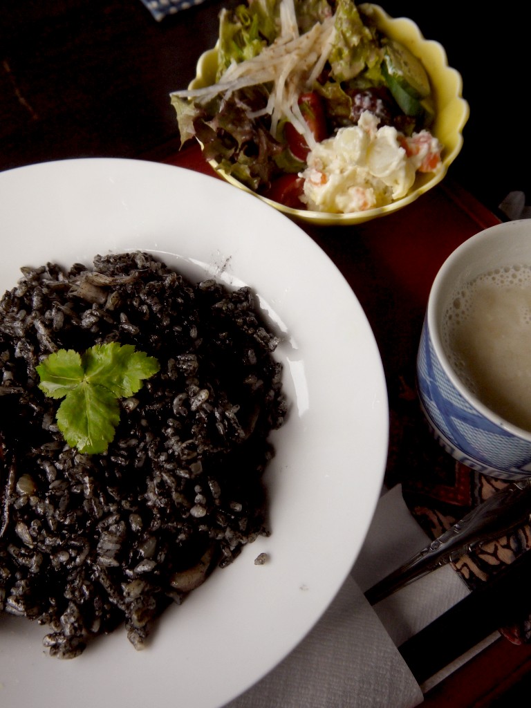 その名の通り、イカ墨で真っ黒に色付けされたピラフ。