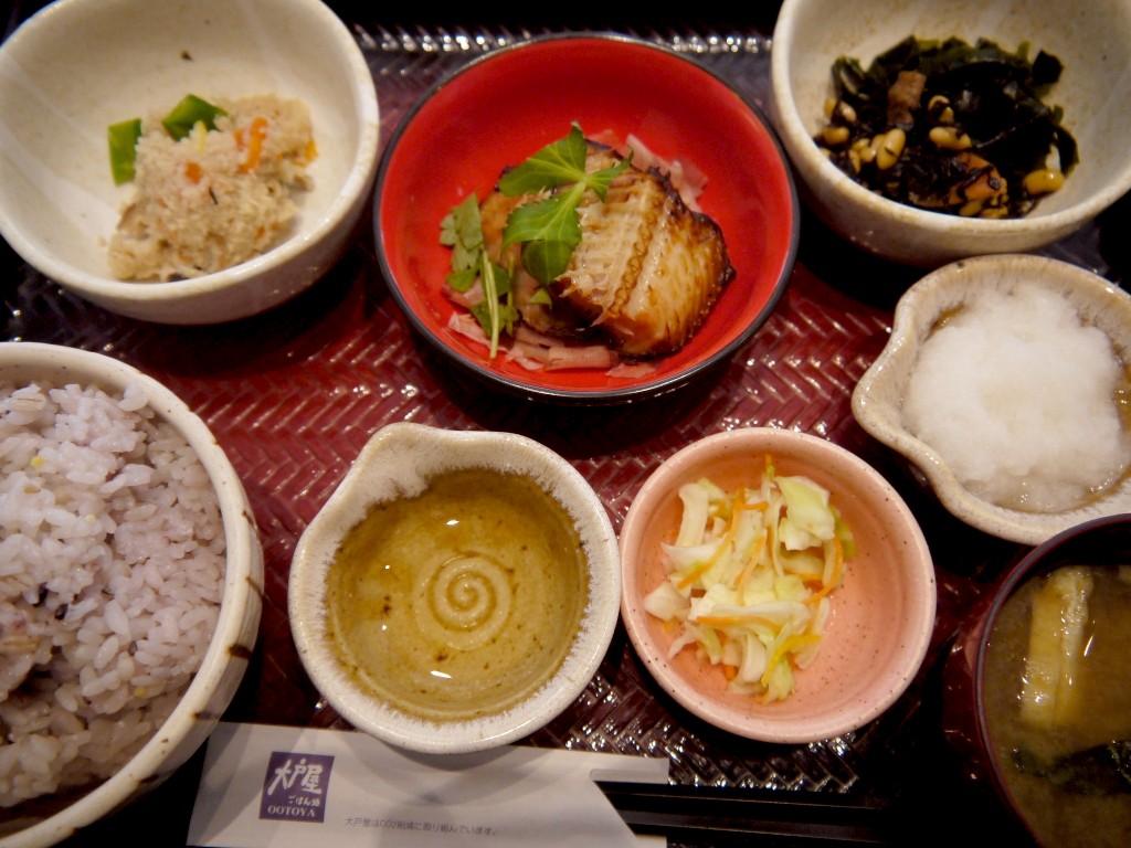 しまほっけのゆう庵焼き、小鉢2品(ひじき、おから)、味噌汁、漬物、ご飯から成る。これぞ和の定食、といった感じ。それぞれが個別の器に設けられているので、やけにボリュームがあるように映る。実際には、程々の量だが。- 旅行時期