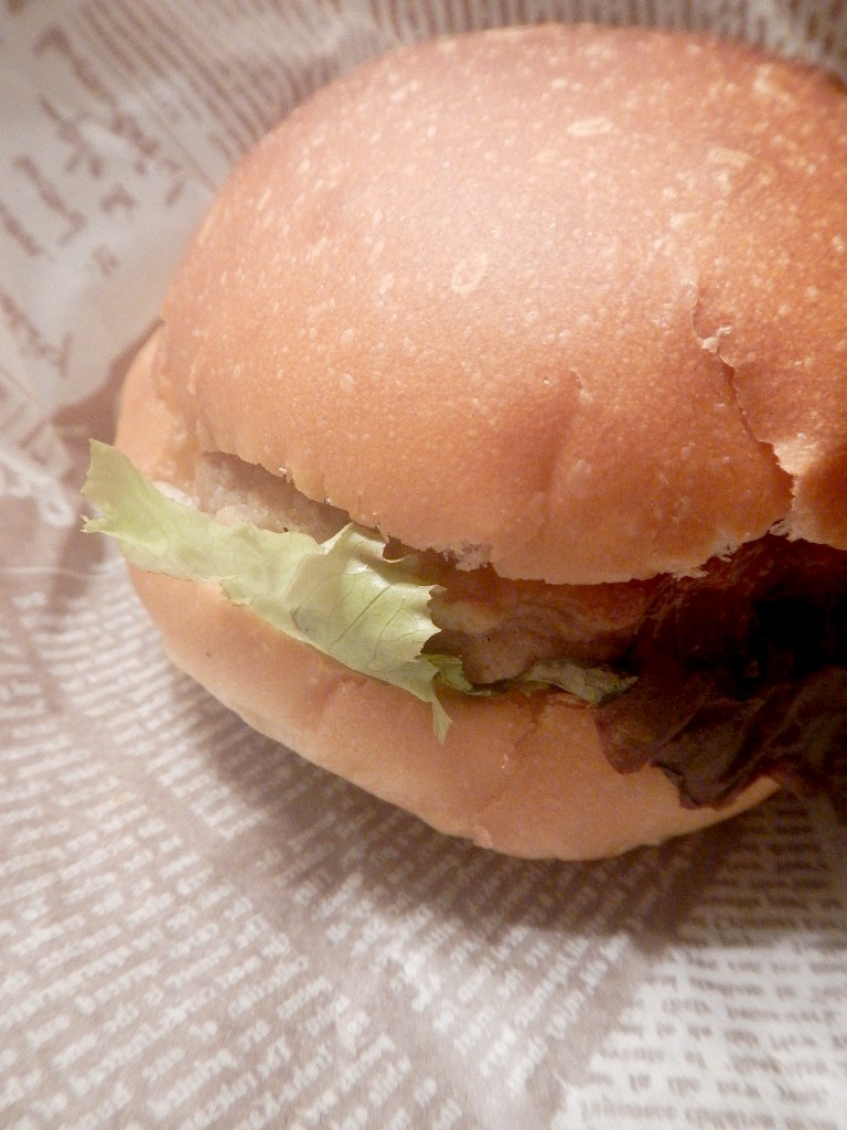 小振りのバンズの間に、厚みのあるハンバーグとレタスが。