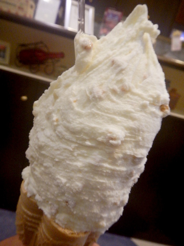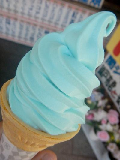 水色のソフトクリームという、アメリカ人なら何となく受け入れるだろうが、日本人だとなかなか受け入れない色合い。