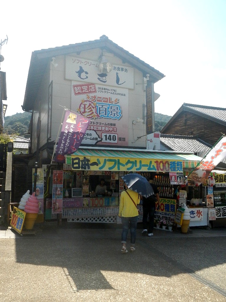店前では、ソフトクリームを販売。「日本一種類を揃えている」を自負していて、現在140種類以上提供しているという(テレビ番組で取り上げられた事も)。常識的なものから、非常識なものもある。