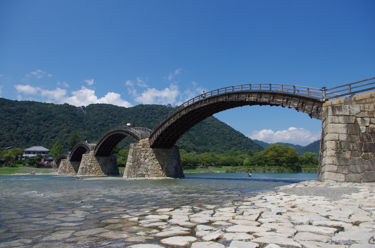 実際には、錦帯橋のアーチをモチーフにしている。表面に、錦帯橋が描かれている。