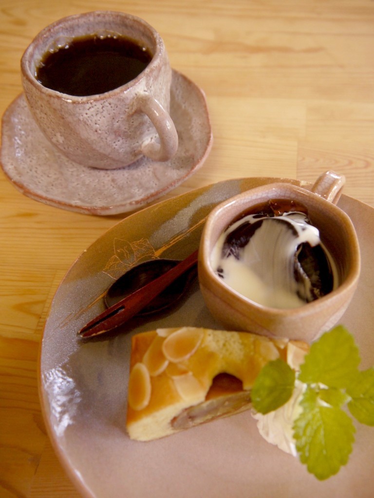 ドリンクに、栗のケーキとコーヒーゼリーが付く、というもの。