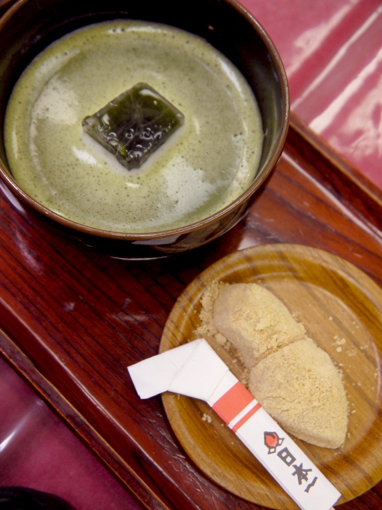 抹茶に、氷を浮かべてある。苦味と、氷の冷たさが、適度な水分補給に。- 旅行時期