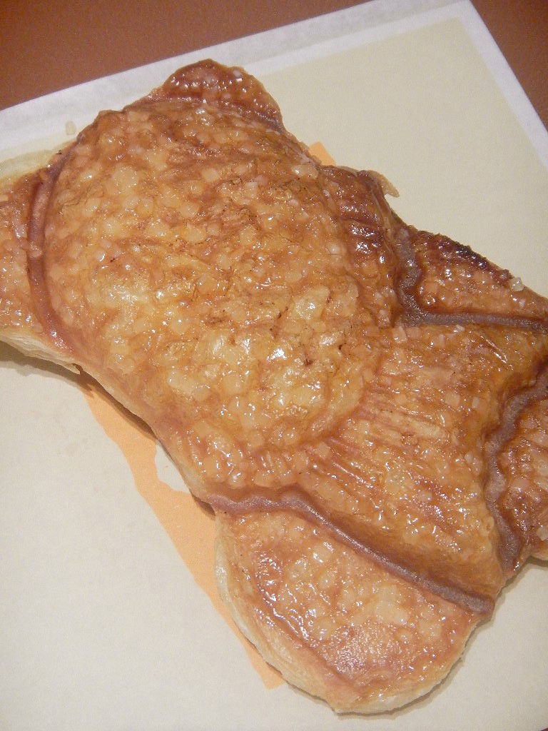 カリカリのクロワッサン風の生地で、たい焼きをこしらえている。生地は、表面がキャラメリゼされていて、カリカリ感が増している。この皮だけでも充分美味しい。触ると手がべた付くので、注意が必要だが。- 旅行時期