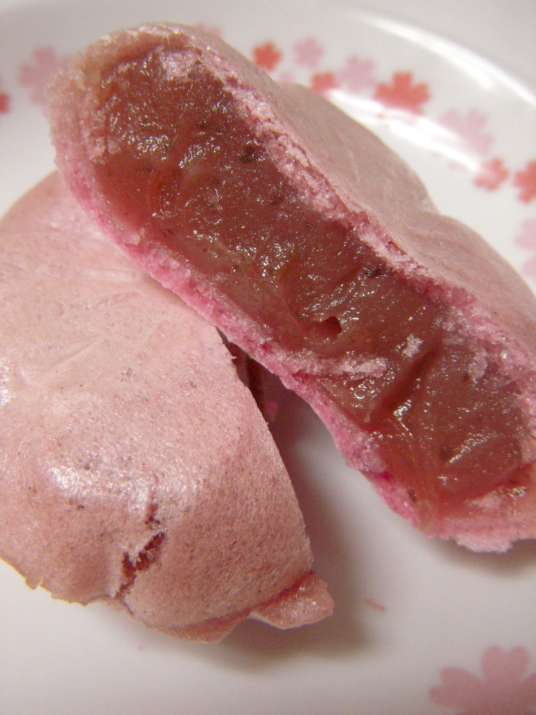 ピンクの最中生地の中に、桜の塩漬け風味の餡が。