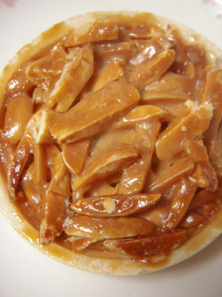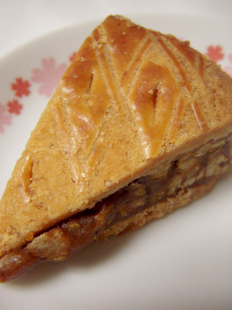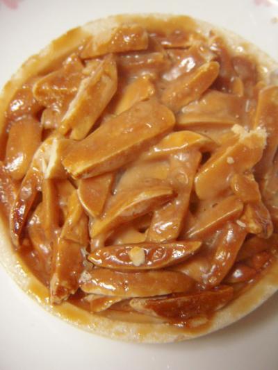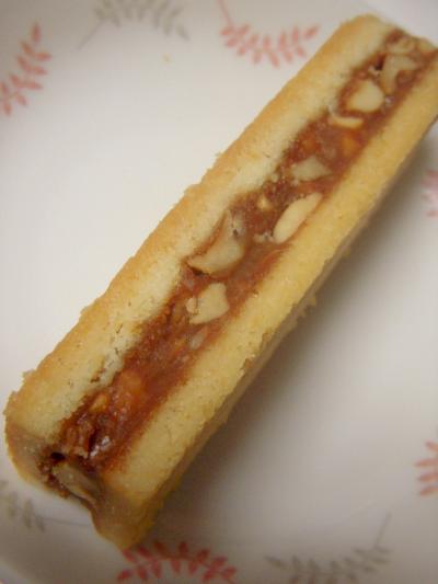 薄めのクッキー生地に、胡桃入りのキャラメルを挟んだもの。