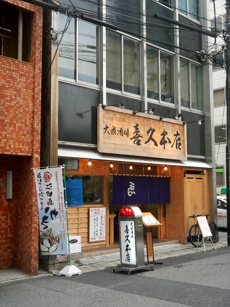 床はコンクリート打ちっぱなしだが、テーブルは白木作りで、いかにも居酒屋、といった雰囲気。