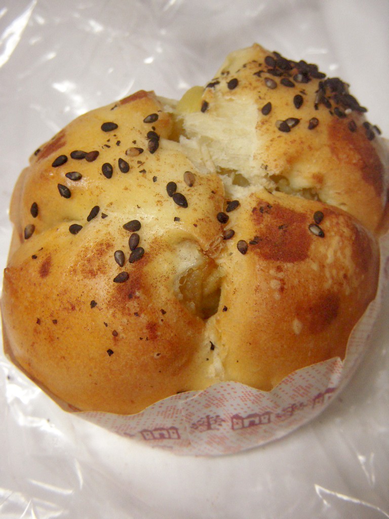薩摩芋餡のパンに、クッキー生地を被せ、メロンパンに仕上げたもの。