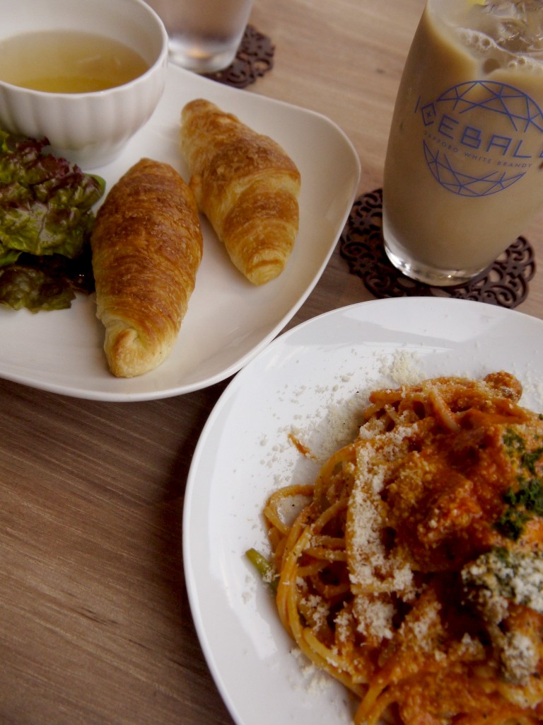 パンも日替わりで、胚芽ロール、クロワッサン、もしくはクルミパンが提供される。この日はクロワッサンが提供された。