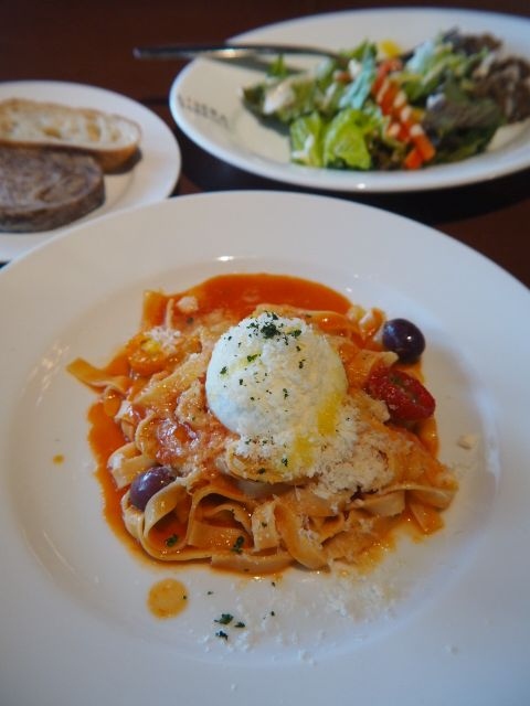 コシのあるタリアテッレと、トマトの程良い酸味、そしてブラッターチーズのモチモチ感を味わえる。