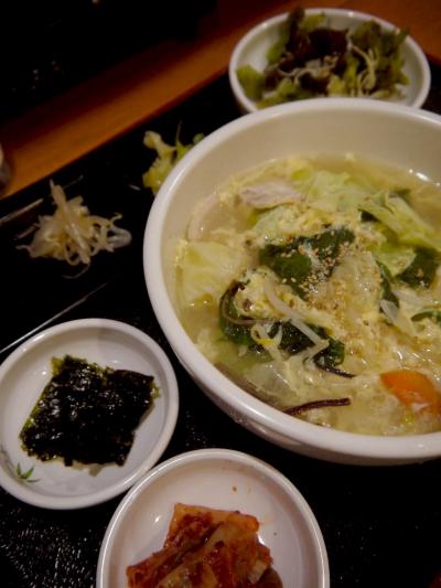 韓国料理というと、何もかも辛いと思ってしまうが、これに至っては辛さが全く無く、口にも腹にも優しい感じ。胡麻油の香りが、食欲をそそる。茶漬けなので、サラサラといただける。