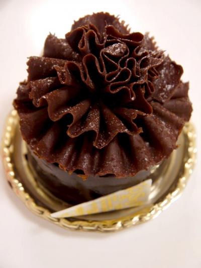フランス産のスイートチョコレートと、ホワイトチョコレートのムースを重ね、濃厚チョコレートソースで全体を覆い、バラの花びらの様に仕上げられたチョコレートをトッピング。