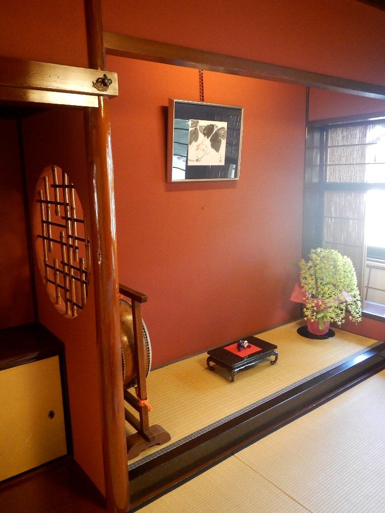 靴を脱いで上がる等、和の空間は残っているが、その後に加わった洋の要素(洋酒等)で、和でも洋でもない不思議な雰囲気になっている。