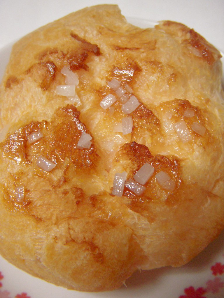 シュー生地に、ザラメをあしらっているのが特徴。ふかふかのシュー生地と、ザラメのシャリシャリ感との対象が良い。