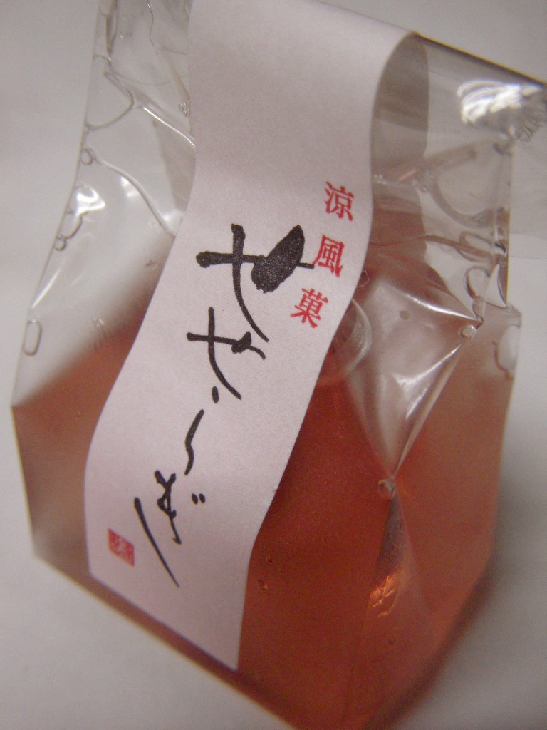 せせらぎ(赤梅)は、当店が提供するゼリー系の菓子の1種。