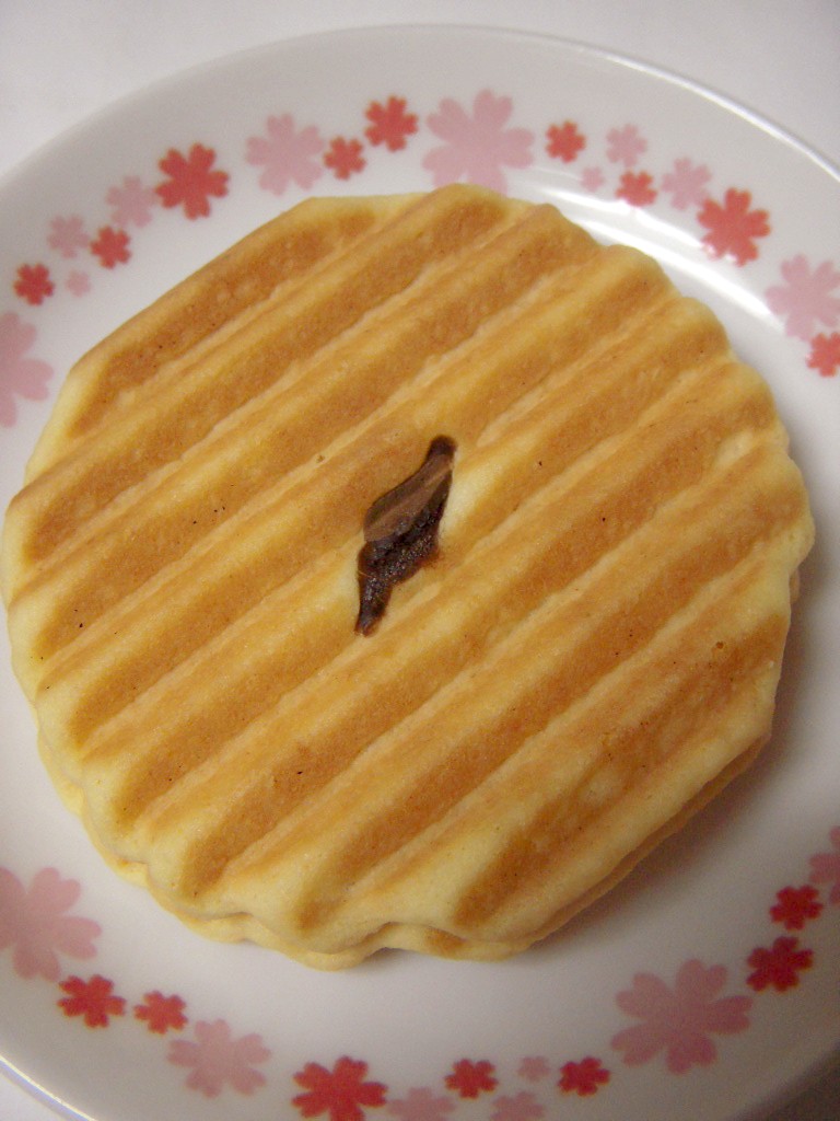薄めの、しっかりした小麦粉ベースの生地の中に、漉し餡が。
