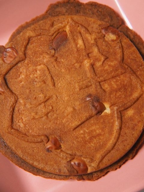 チョコ入りの小振りなパンに、パン他の顔を模ったクッキー生地を被せて焼き上げている。