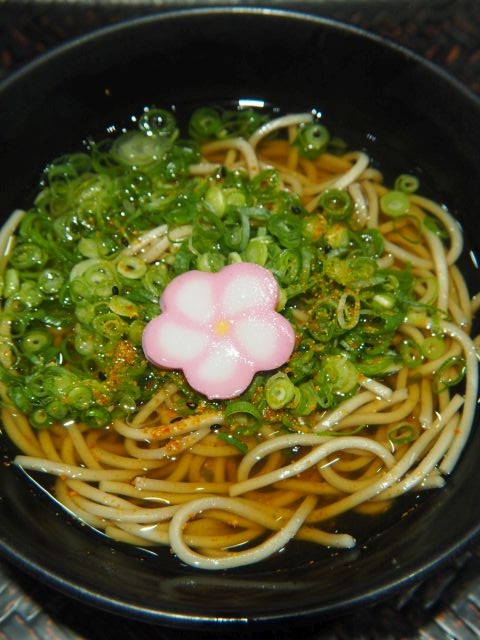 最もベーシックな蕎麦で、ネギと花形の蒲鉾がトッピングされているだけのシンプルな内容。