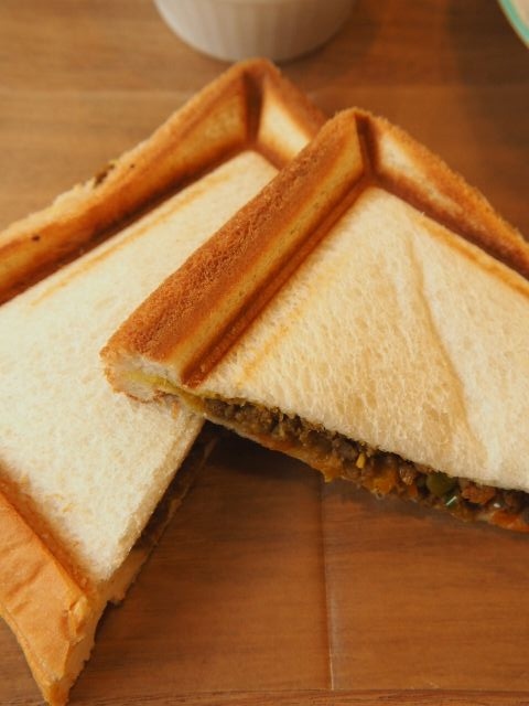 挽肉たっぷりのドライカレーが食パンの間にたっぷりと。- 旅行時期