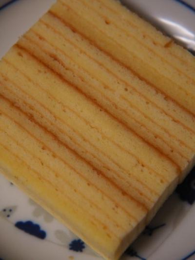 リング状ではなく、直方体にカットされているので、バウムクーヘンと認識し辛い。