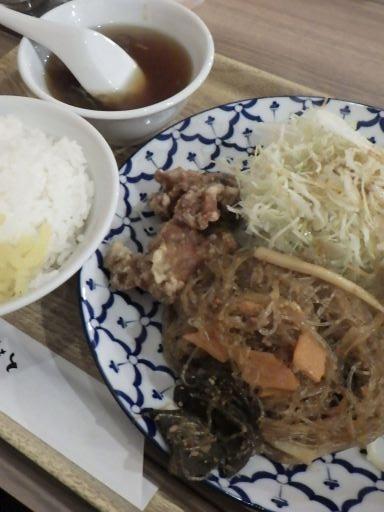 スープは卵スープ、小鉢は餃子、漬物はメンマだった。- 旅行時期