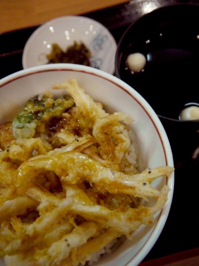 それでも掻き揚げ、海苔、イカ、野菜2種、鶏、そして穴子が丼に所狭しと盛られている姿は圧巻的。下のご飯がまるで見えない。「天丼とはこういうものだ」と教えられている感じ。- 旅行時期