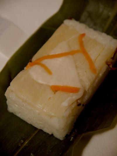 竹皮で包まれているのが特徴(といっても、直に包んではおらず、中はアルミホイル包装になっている)